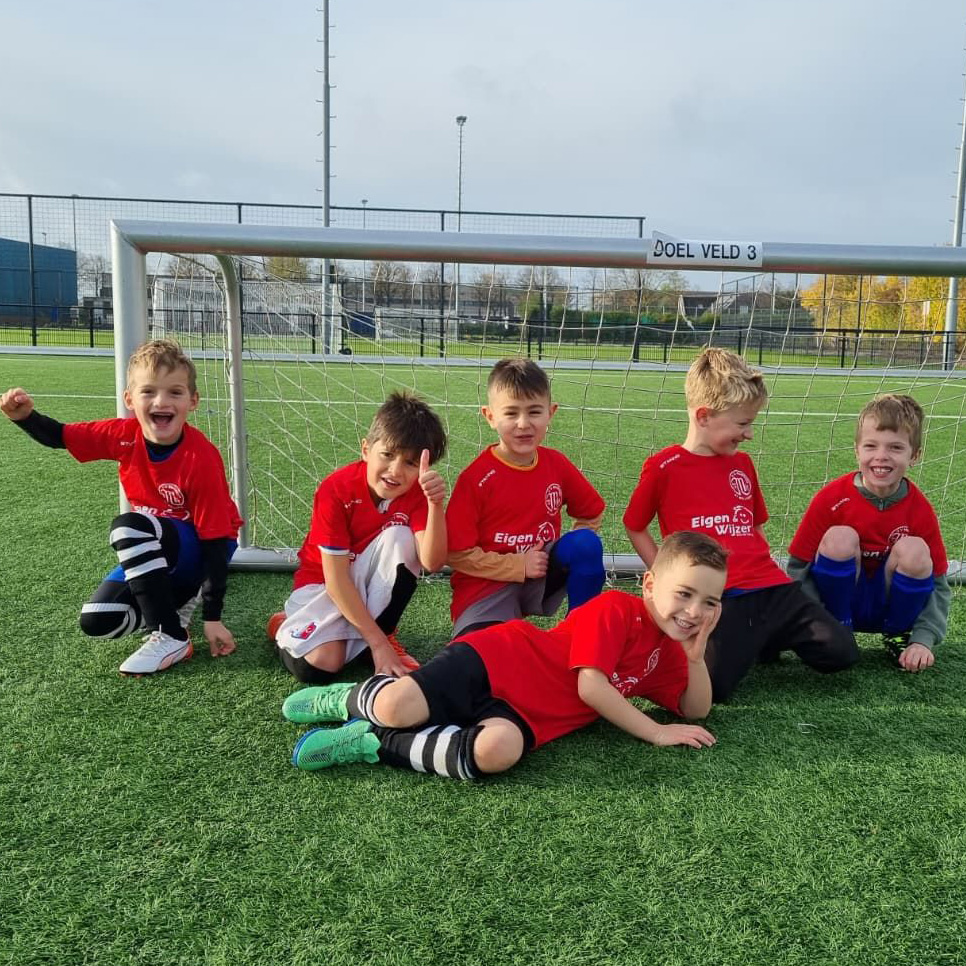 De JO7 traint twee keer per week. Op vrijdagavond werken ze met veel enthousiasme aan hun techniek: dribbelen, passen, schieten — én vooral veel lachen. Op zondagochtend spelen ze hun eigen interne competitie, waarbij de ouders als trouwe supporters langs de lijn staan. Die zondagen zijn altijd iets bijzonders: het spelplezier spat ervan af, en de sfeer is warm en gezellig. Ouders, broertjes en zusjes moedigen enthousiast aan en genieten mee van het enthousiasme van deze jonge voetballers.