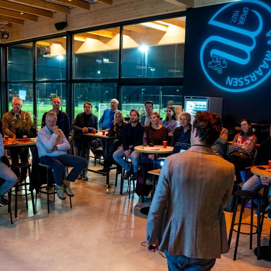 De avond werd geopend met een presentatie van Camiel, die de aanwezigen meenam in de huidige stand van zaken binnen de club. Uiteraard sprak hij ook zijn dank uit aan alle sponsoren: dankzij hun steun kan VV Maarssen blijven groeien, activiteiten organiseren, jeugdtrainers inzetten en zorgen voor passende sportkleding. Sponsoring is voor de club van onschatbare waarde en daarom doen we graag iets terug.